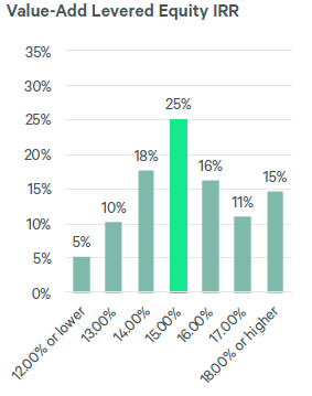 • Value-Add equity IRR expectations rose to 15.30%. This is up from ~12% in January of this year.
